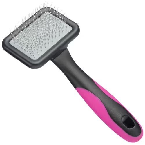 Miękka szczotka typu pudlówka, Blovi Ball Pin Slicker, zaprojektowana dla małych i średnich psów oraz kotów. Z elastycznymi, zagiętym i zakończonymi kulką pinami, osadzonymi w miękkiej, amortyzującej nacisk poduszeczce. Taka konstrukcja bardzo dobrze chroni czworonoga przed zadrapaniem i jest w szczególności polecana dla zwierząt z delikatną, wrażliwą skórą. Szczotka doskonale nadaje się do rozczesywania sierści, poradzi sobie z niewielkimi kołtunami i splątaniami. Z jej pomocą wyczeszesz z luźny włos. Ponadto, podczas czesana igły szczotki łagodnie masują skórę czworonoga podczas, poprawiają jej ukrwienie i zapewniają równomierne rozprowadzenie sebum na włosach - naturalnej substancji, wydzielanej w gruczołach łojowych skóry. Dzięki temu włosy stają się bardziej miękkie i elastyczne, mniej narażone na przesuszenie. Ergonomicznie wyprofilowany uchwyt z gumowymi, antypoślizgowymi wstawkami umożliwia wygodne trzymanie i pewną pracę, bez obaw o wyślizgnięcie się narzędzia z dłoni. Blovi Medium Ball Pin Slicker świetnie nadaje się zarówno do profesjonalnego użytku w salonach groomerskich oraz hodowlach, jak i pielęgnacji czworonoga w domowym zaciszu.