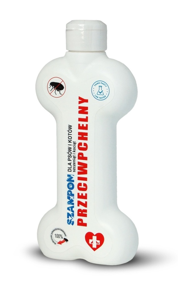 Specjalistyczny szampon dla psów i kotów, którego formuła oparta jest na Dimethicone. Szampon w sposób mechaniczny zwalcza pchły i ich larwy, a dodatek ekstraktu z aloesu łagodzi podrażnienia, nawilżając skórę i wspierając jej regenerację. Produkt wyróżnia przyjemny, odświeżający zapach zielonego jabłka.