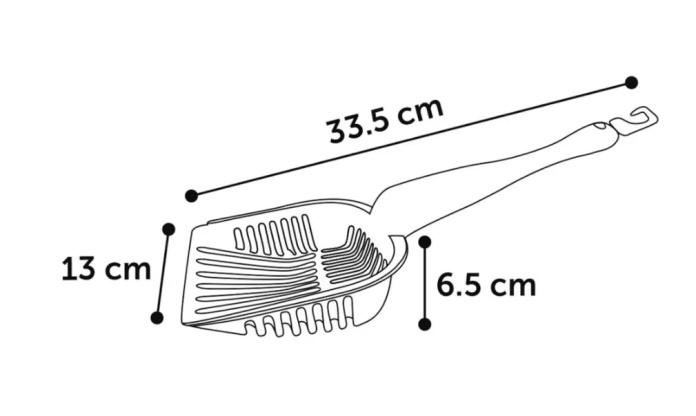 Wysokiej jakości łopatka wykonana w 98% z materiału pochodzącego z recyklingu. Jej ergonomiczny kształt zapewnia komfort pracy, szybkie i łatwe utrzymanie porządku w kuwecie Twojego kota. Koniec z rozsypującym się żwirkiem. Oczka łopatki przystosowane do wybierania żwirku silikonowego oraz innych nieczystości. Łopatka jest łatwa do mycia. Posiada haczyk, dzięki któremu możliwe jest jej zawieszenie.