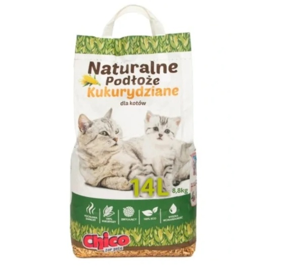 CHICO to ekologiczny żwirek dla kotów, w pełni naturalny i biodegradowalny, wykonany w 100% z kukurydzy, bez dodatku chemikaliów. Dzięki wysokiej chłonności skutecznie utrzymuje czystość w kuwecie, jednocześnie dbając o komfort kocich łapek.
